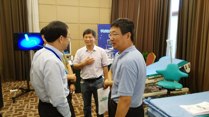 國家衛(wèi)計委繼教中心楊爰平主任放棄休息,全天參加了學術研討、遠程介入超聲演示觀摩等活動,加深了對超聲新技術的理解,從而更好的領導超聲能力建設項目的實施。晚上楊主任不顧一天的勞頓,在會場召開了部分演講專家的座談會,王金銳、錢林學、劉吉斌、毓星 等多位專家到科美達展位進行參觀,并就超聲在??祁I域的信用討論,充分肯定了科美達公司這幾年在專科領域的成就,勉勵科美達保持在婦科超聲領域的研發(fā)、臨床優(yōu)勢,引領中國超聲走出一條新路。